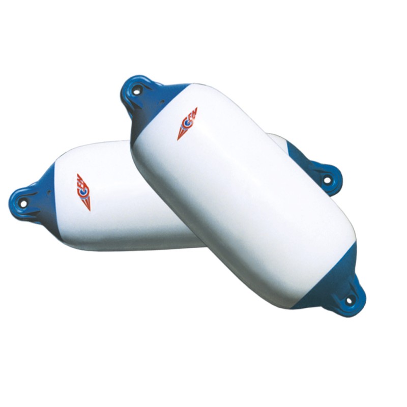 Parabordo gonfiabile con anelli di aggancio, colore bianco con calotte blu.