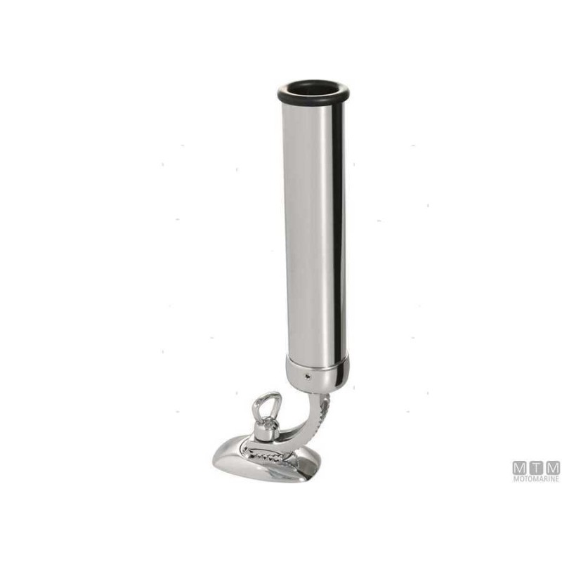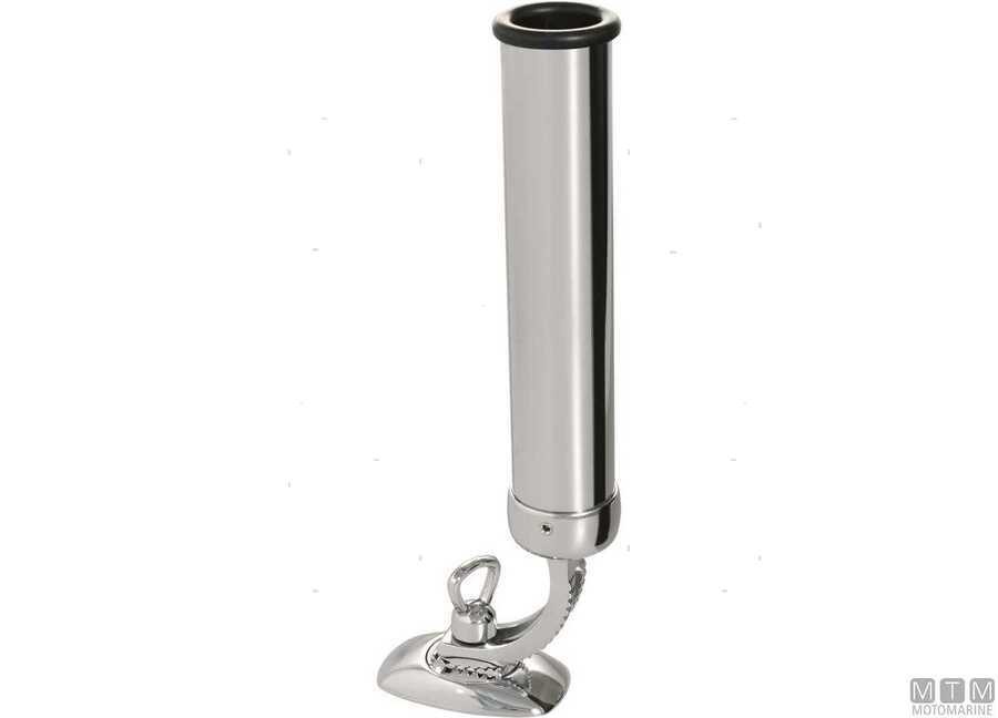 Supporto portacanne orientabile in Ottone Cromato con base piana e boccola in gomma a protezione della canna.