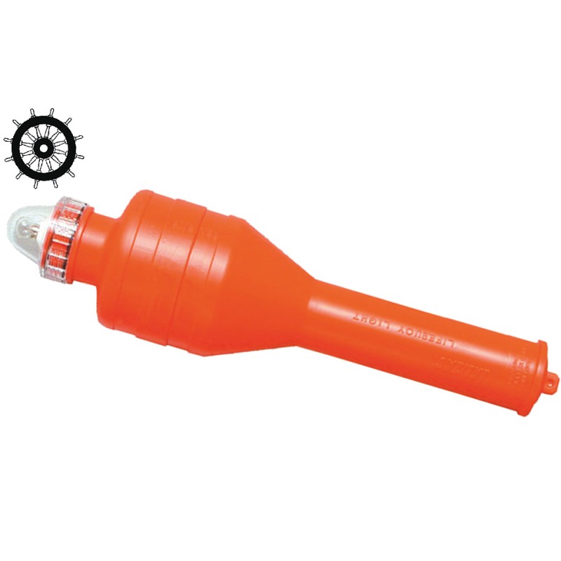 Boetta luminosa a luce bianca brillante continua in plastica antiurto, luminosità di 2 candele, approvata SOLAS/MED e USCG. Approvata secondo le direttive comunitarie (EU) 2021/1158.
