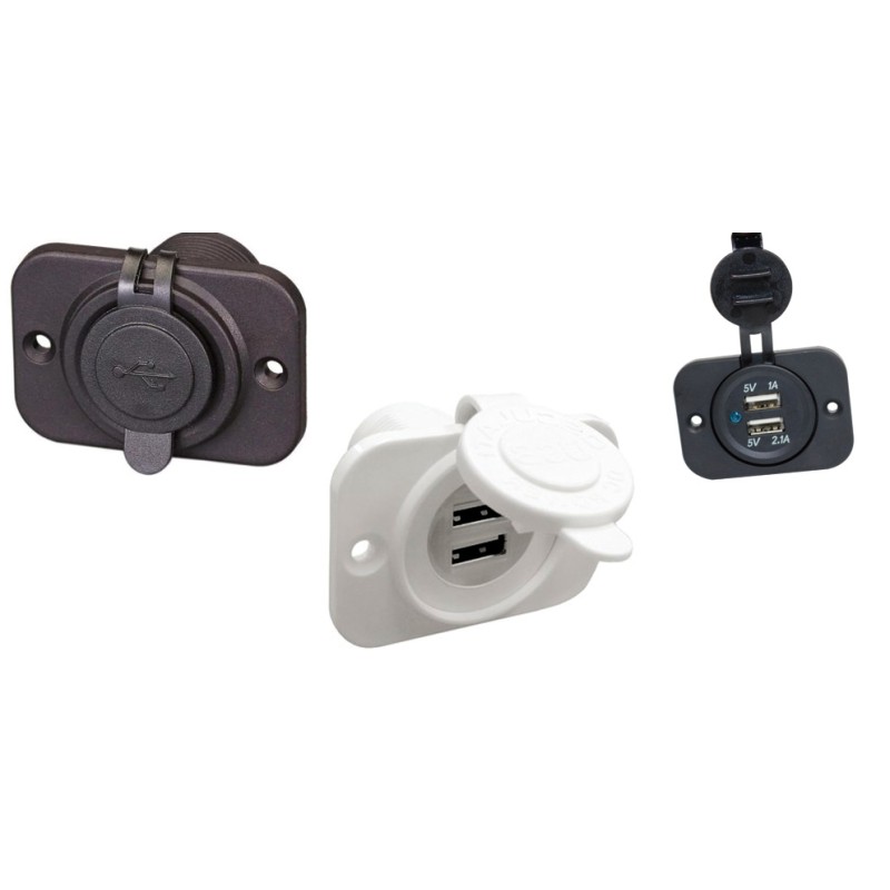 Presa USB doppia, completamente impermeabile con luce a led e fissaggio a vite.