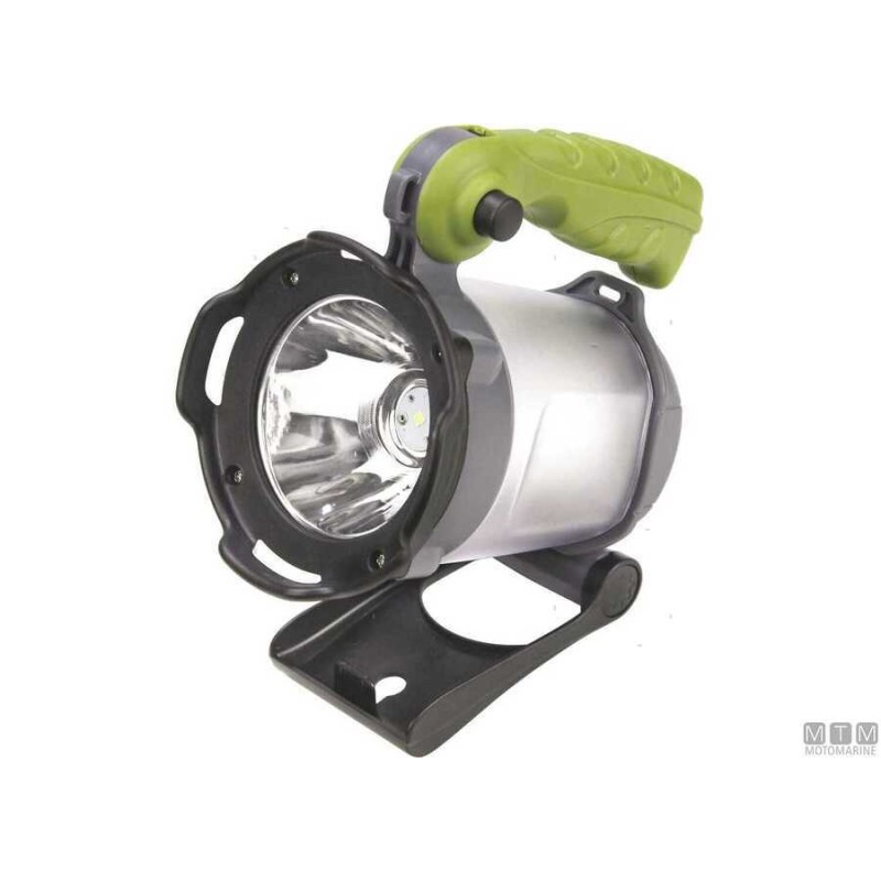 Torcia LED in ABS rinforzato con manico ergonomico regolabile fino a 90° e piedistallo a scomparsa. 3 tipi di luce settabile: Alta intensità (850 lumen) - Lampeggiante (220 lumen) - Media intensità (220 lumen). Autonomia massima a media intensità di 3,5 ore. Funzione Power Bank da 2400mah.