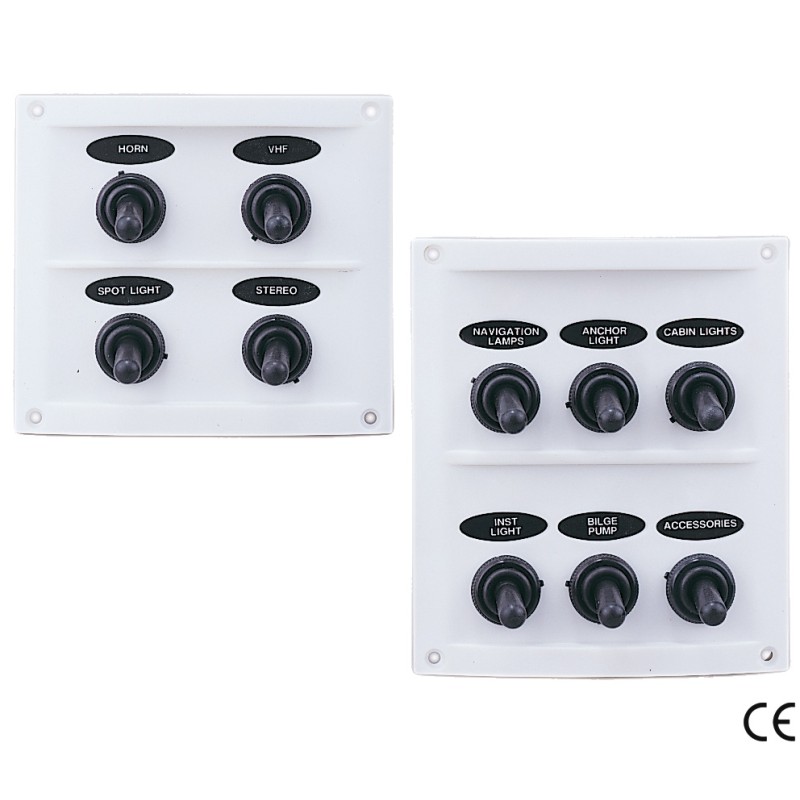 Pannello elettrico con interruttori waterproof completo di targhette di identificazione, portafusibili e fusibili di protezione.