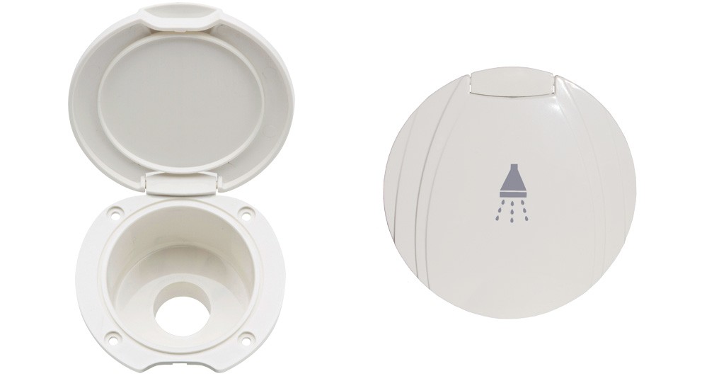 Contenitore porta doccia a scomparsa con tappo, adatto a tutti i tipi di docce a stilo.