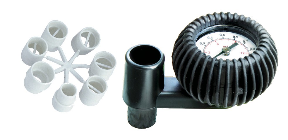 Manometro controllo pressione fino a 1 bar. La particolare configurazione consente una misurazione progressiva durante il gonfiaggio.