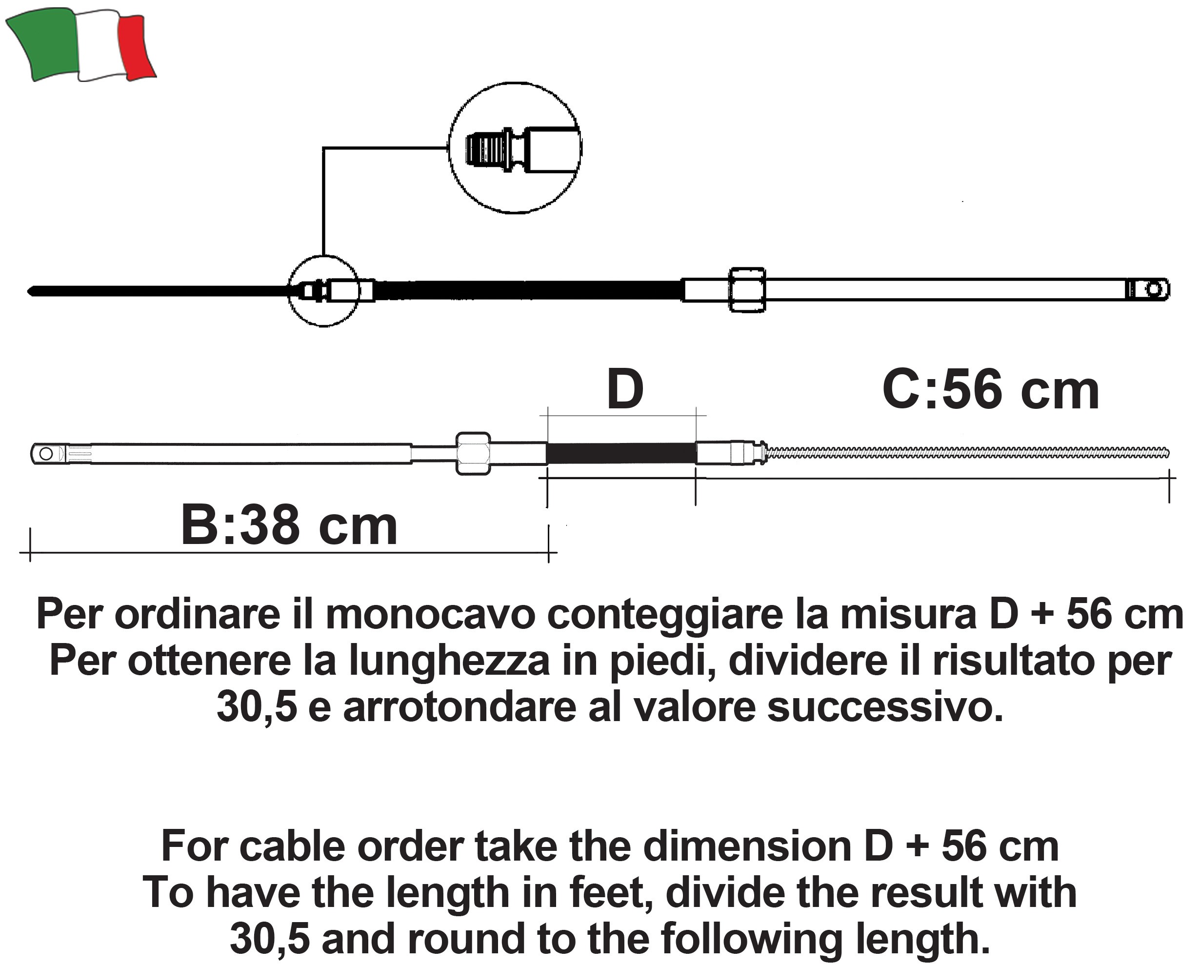 Monocavo M58 adatto per timoneria T67, si può inoltre montare su timonerie C230/C231 Morse, Compac-t Teleflex, 850 TX senza nessun kit adattamento.