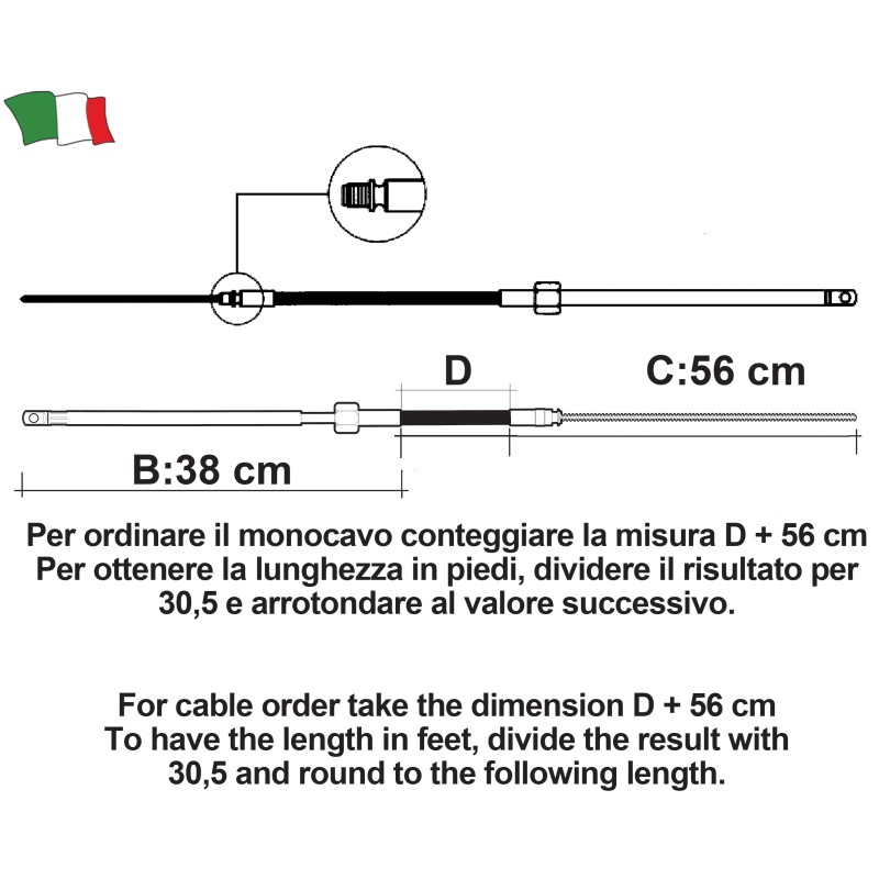 Monocavo M58 adatto per timoneria T67, si può inoltre montare su timonerie C230/C231 Morse, Compac-t Teleflex, 850 TX senza nessun kit adattamento.