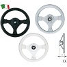 Volante con dimensioni ridotte a tre razze. Struttura in materiale termoplastico ed impugnatura rivestita in poliuretano morbido.